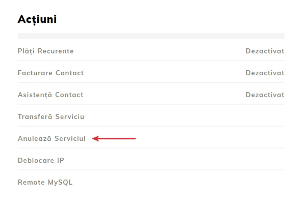 - Na otevřené stránce se zobrazí všechny aktivní služby a hosting, který má být uzavřen, se otevře;