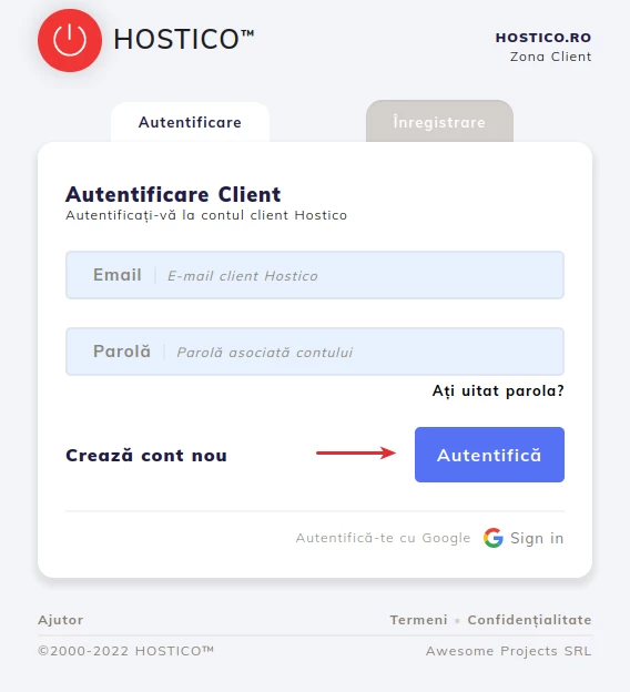 Poznámka: Pokud si nepamatujete heslo potřebné k autentizaci ve vašem účtu, přistupte k tutoriálu Obnovení hesla klientského účtu Hostico a podívejte se na potřebné kroky pro regeneraci hesla.