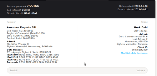 - Ve otevřeném okně budou zobrazeny aktuální údaje používané na úrovni proformy spolu s odpovídajícími částkami;